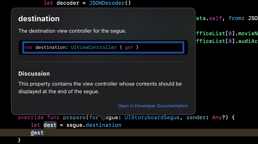 let dest = segue.destination as? DetailViewController,